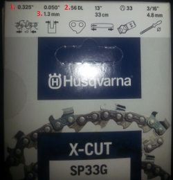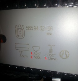 Esimerkkiketjun ketjujako on .325", vetolenkkien lukumäärä 56 ja vetolenkin leveys 1,3mm. Näillä tiedoilla löydät varmasti sopivan teräketjun moottorisahaasi.