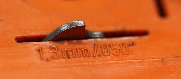 Vetolenkin leveyden voi mitata esimerkiksi työntömitalla tai kuvan mukaisella tulkilla. (Huomaa, että käytetyn teräketjun vetolenkki voi olla joskus erittäin kulunut). Alla listaus ketjujaoille tyypillisistä vetolenkin leveyksistä.