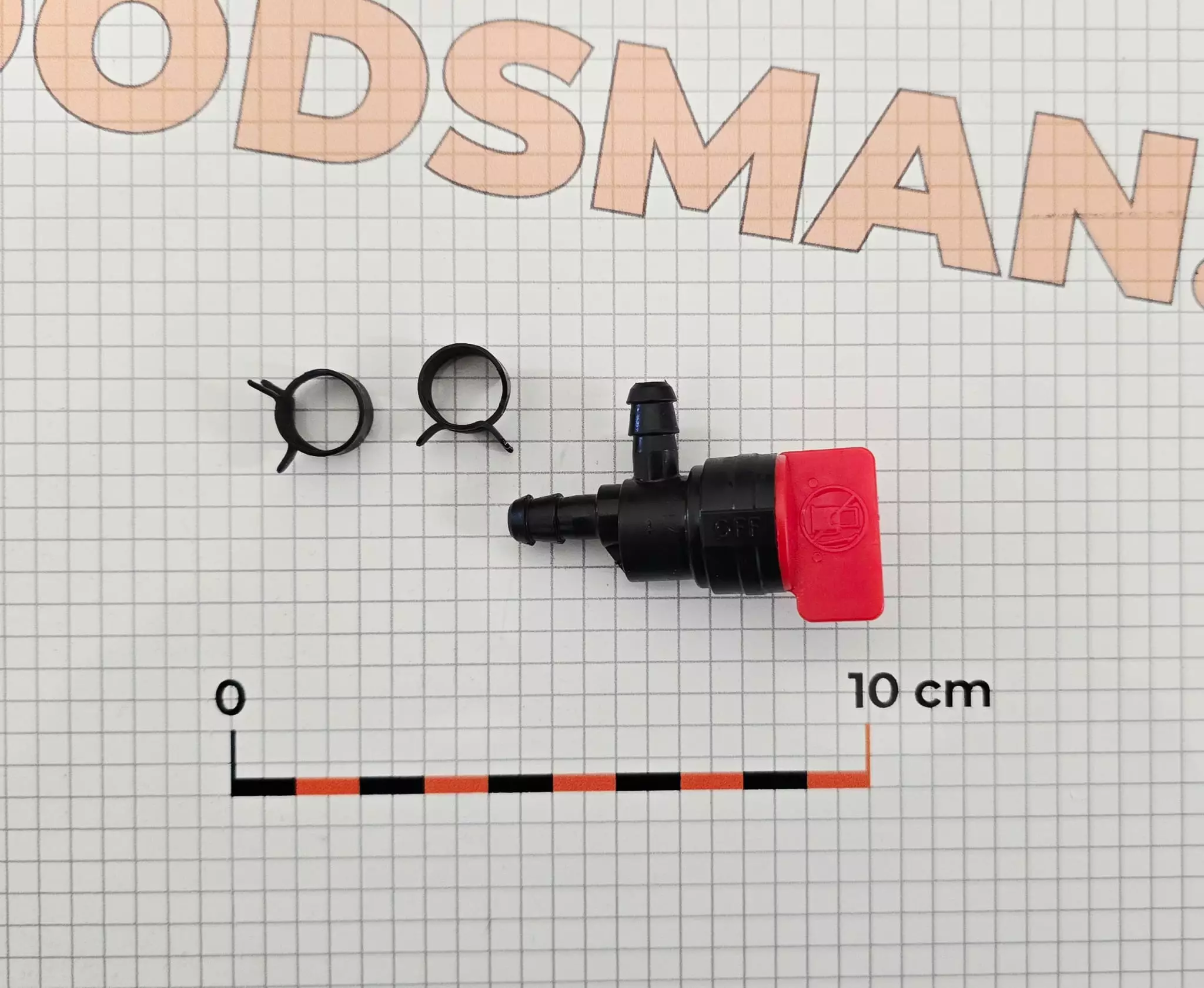 Kulmaliittimellä varustettu polttoainehana kiristysklipseillä.