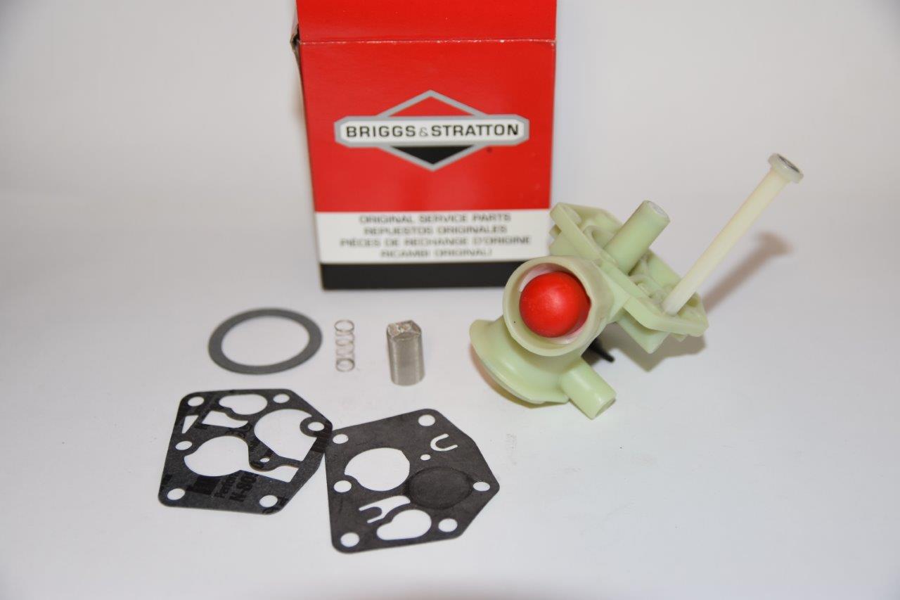 Briggs and Stratton kaasutin - sarja Alkuperäinen B&S kaasutin primerilla, kalvoilla, jousella ja sihdillä sekä ilmanpuhdistimen tiivisteellä.
