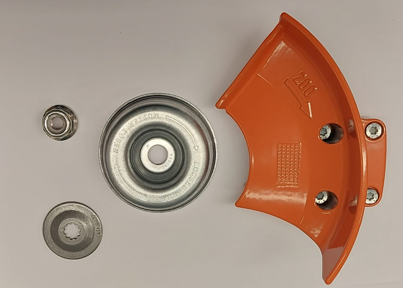 FS sektorisuoja ja raivausterän kiinnityssarja STIHL FSA 135 ja FSA 130 akkukäyttöisiin raivaussahoihin. Tämän sarjan avulla voit käyttää akkuraivaussahassa metsänraivausterää / kiinnittää kolmioterän vakiona tulevan muovisojan kanssa käytettäväksi.