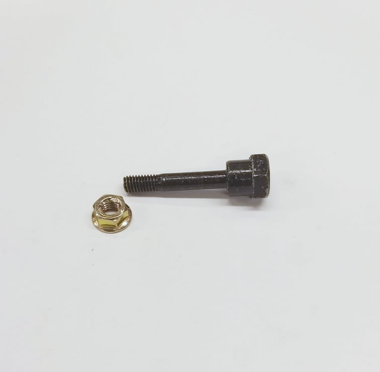 Katkopultti + mutteri vanhoihin Yamahan ja Husqvarnan lumilinkoihin. Tarvikevaraosa. Kokonaispituus noin 48mm, pulttiosan halkaisija 5,8mm ja kauluksen halkaisija 11,8mm.