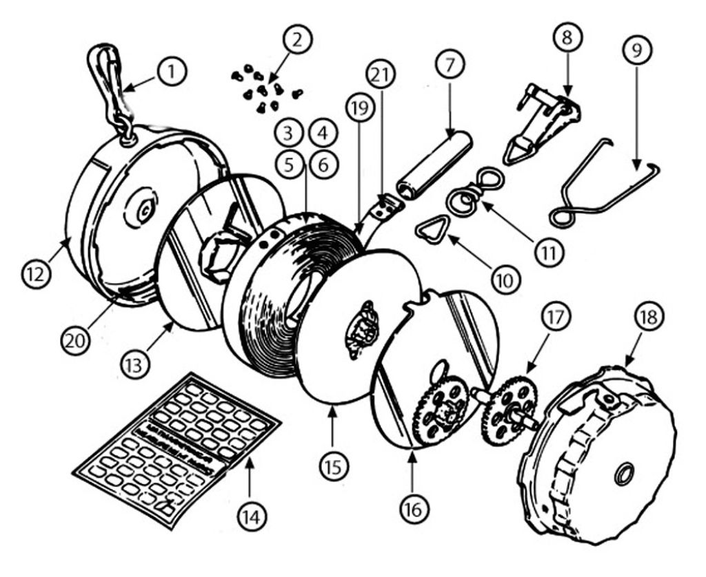 Varmista aina sopivuus ennen tilaamista esimerkiksi mittanauhasi varaosakuvista. Huom! Positiot 5 ja 6 ovat mittarullan jenkkiversioita (mitat jaloissa). Näitäkin saa erikseen tilaamalla. Jousipakkaa (positio 18) ei saatavilla.