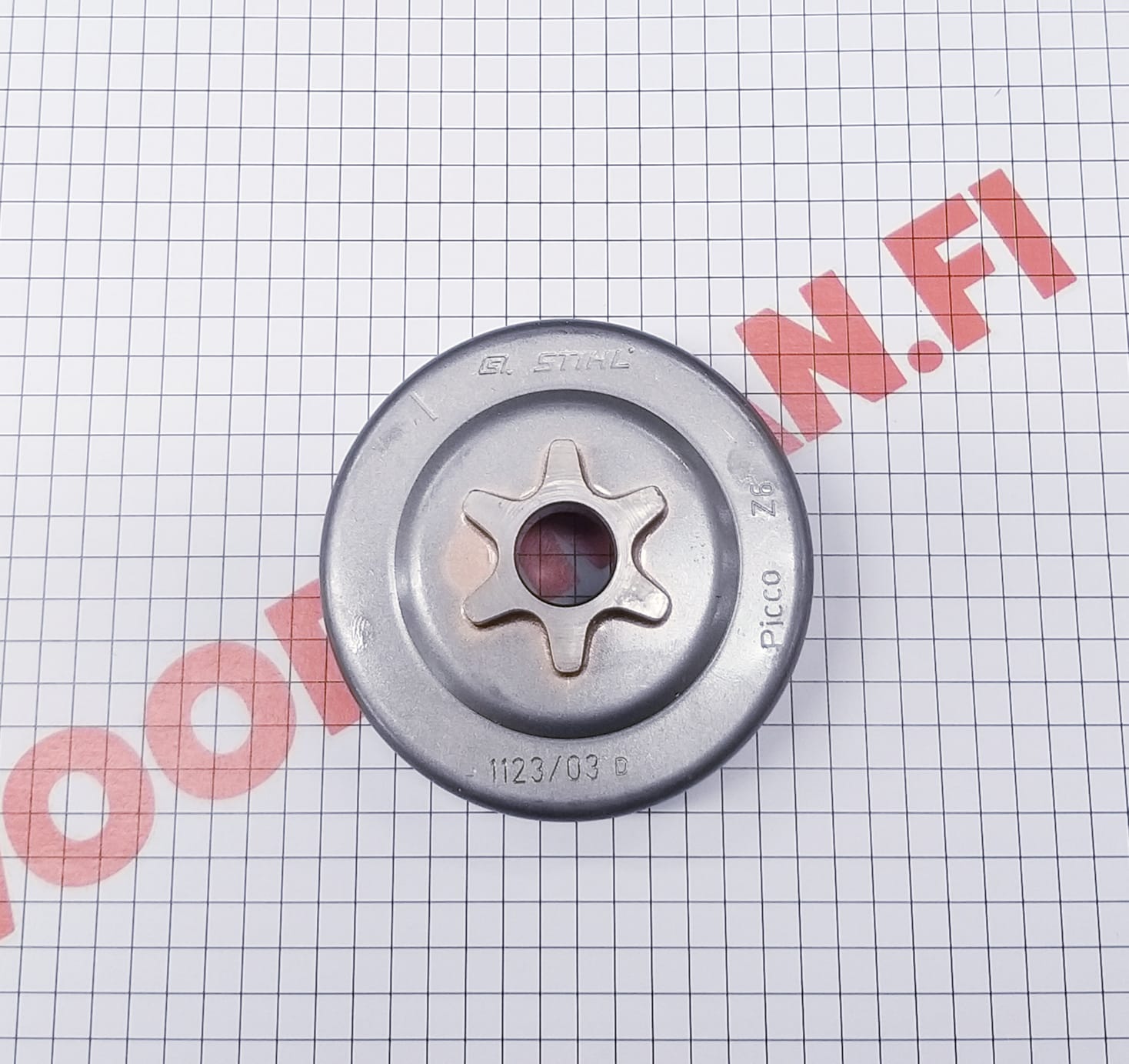 3/8"P 6h vakio kytkinrumpu / vetopyörä STIHL moottorisahoihin 017, 018, 019, MS 170, MS 180, MS 190 T ja MS 191 T. Korvaa vanhan varaosanumeron 11236402005