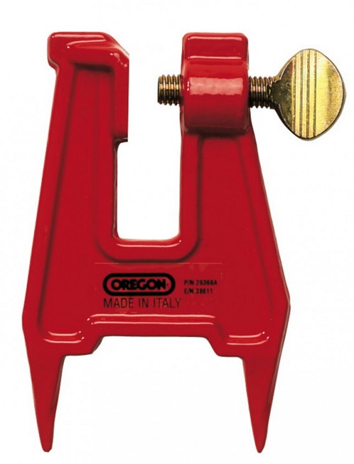 Esimerkiksi kantoon lyötävä viilaustuki moottorisahan teräketjulle. Kiinnitetään terälevyyn laipparuuvikiinnityksellä.