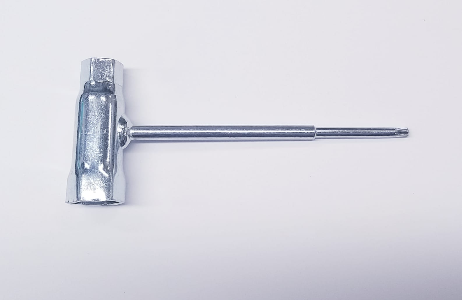 Yhdistelmäavain Husqvarnan laikkaleikkureihin, sopii kiinni vesihanan vieressä olevaan työkalupidikkeeseen. Avainkoot 19mm (tulppa ja hihankiristin) / 13mm (teräpultti). Päässä Torx-avain.
